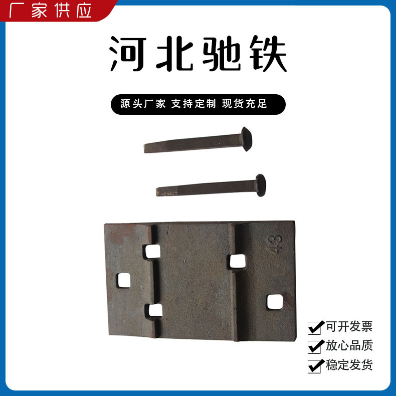 主要產(chǎn)品:鐵路配件、行車(chē)配件、工礦配件、魚(yú)尾板、道釘、壓軌器、軌道壓板、軌距拉桿、護(hù)軌扣板、T型螺栓、魚(yú)尾螺栓、彈條、軌距擋板